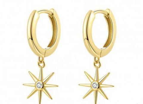 Pendiente aro con estrella disponible en plata 925 bañada en oro.