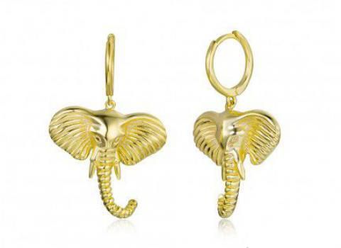Pendiente aro con cabeza de elefante disponible en plata de primera ley y plata 925 bañada en oro.