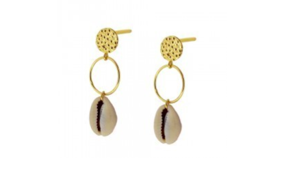 Pendiente aro con concha disponible en plata 925 bañada en oro.