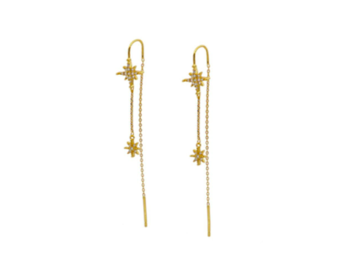 Pendientes largos en plata 925 con baño de oro y con circonitas .