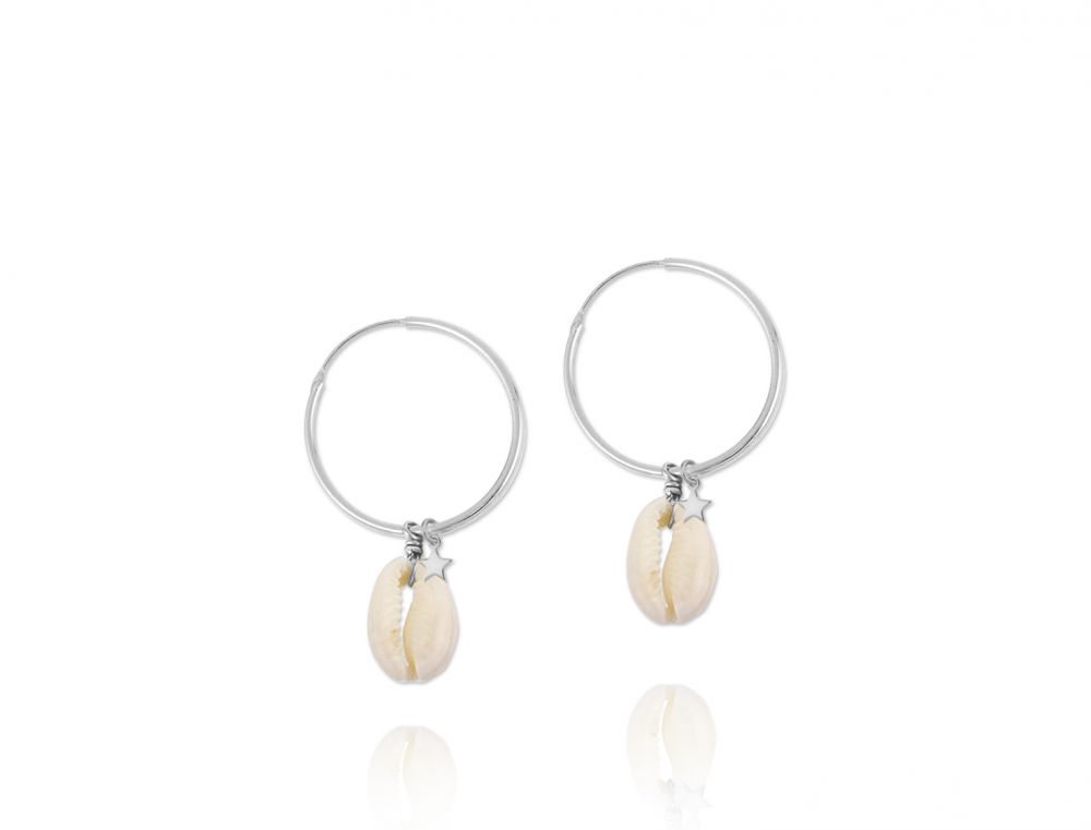 Pendientes de Plata de Ley en dorado con concha natural 25 mm