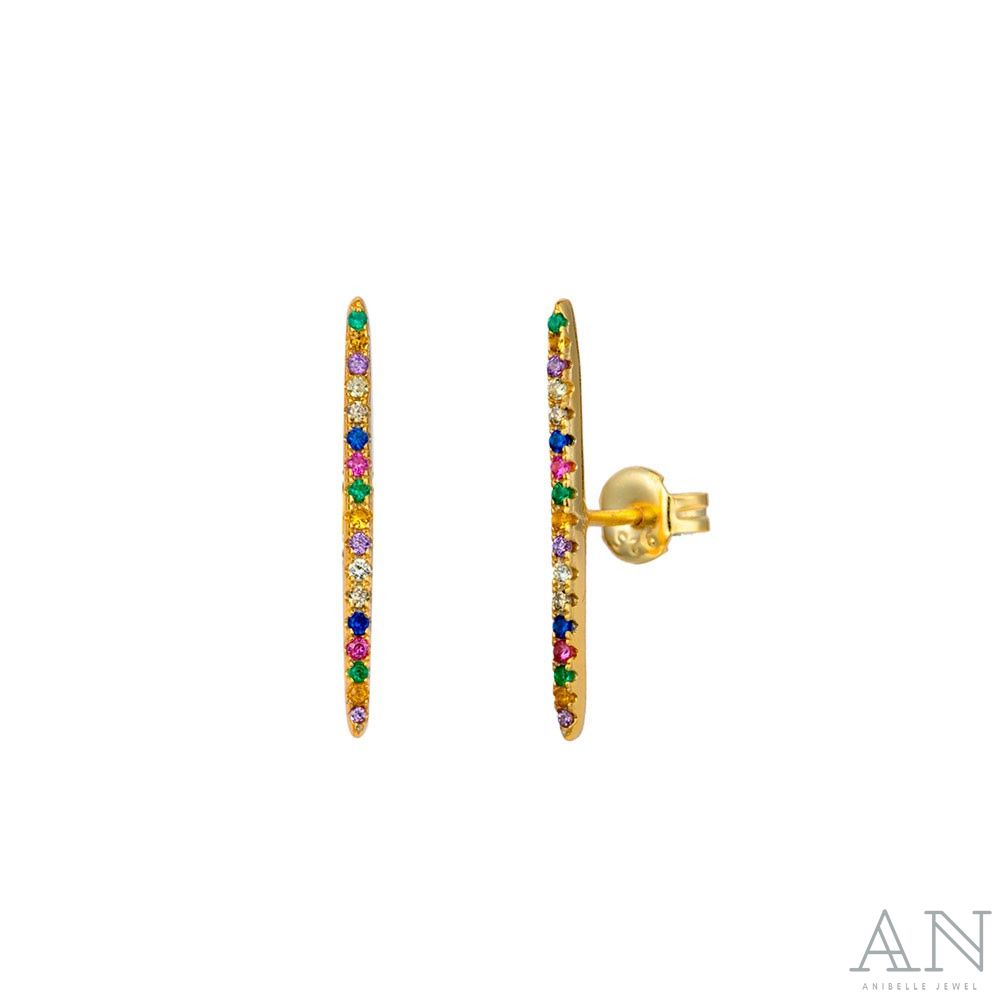 Pendiente palo con circonitas de colores plata 925 bañada en oro.
