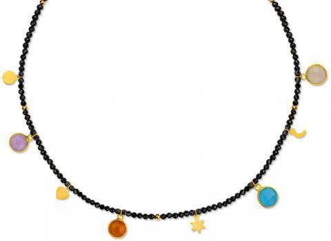 Gargantilla de Plata de Ley en dorado con piedra de color
