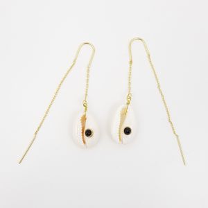 Pendientes disponibles en plata 925 con baño de oro con concha colgando.