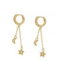 Pendiente estrella y luna disponible en plata 925 bañada en oro.