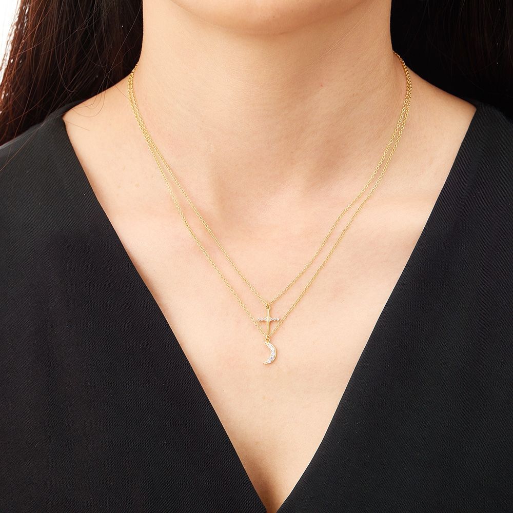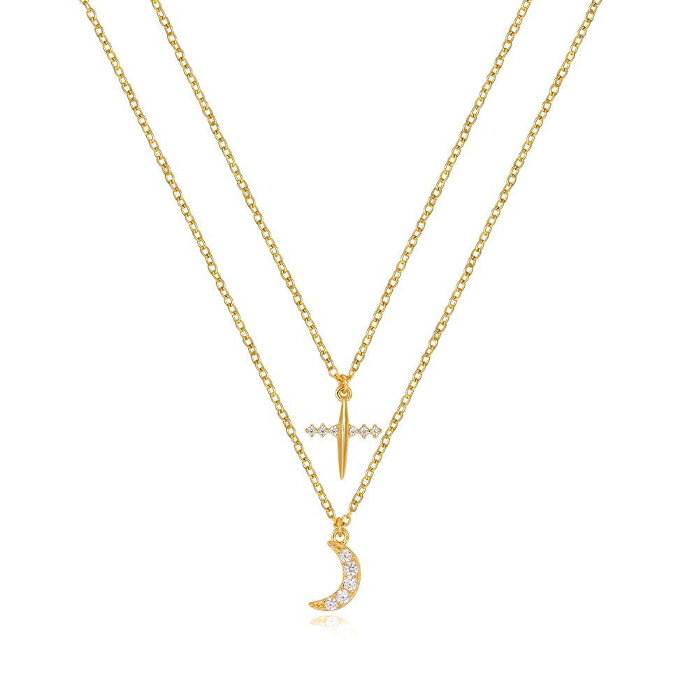 - Collar Plata 925 chapado en oro - Motivo : Luna y Cruz - Medida : Luna 9mm Cruz 11*10