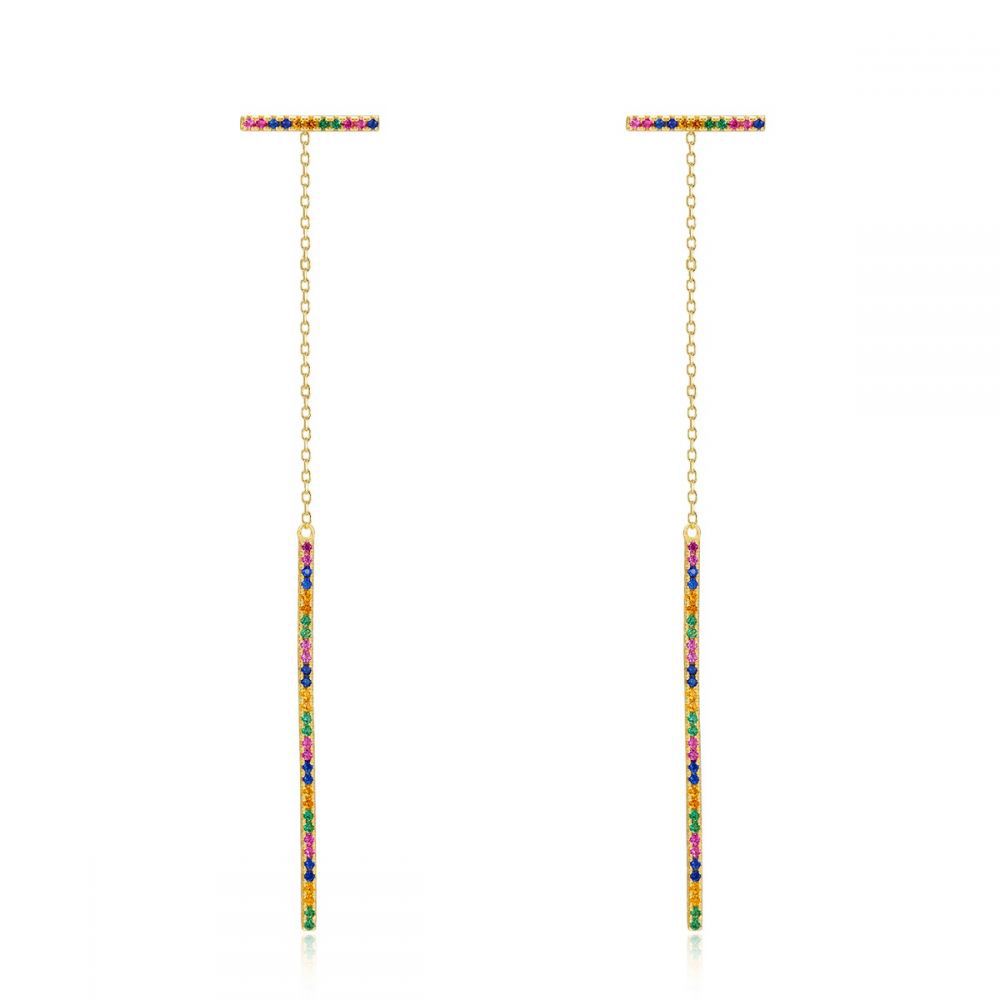 Pendientes Circonita - Palo Cadena - Circonita Multi Chapado Oro