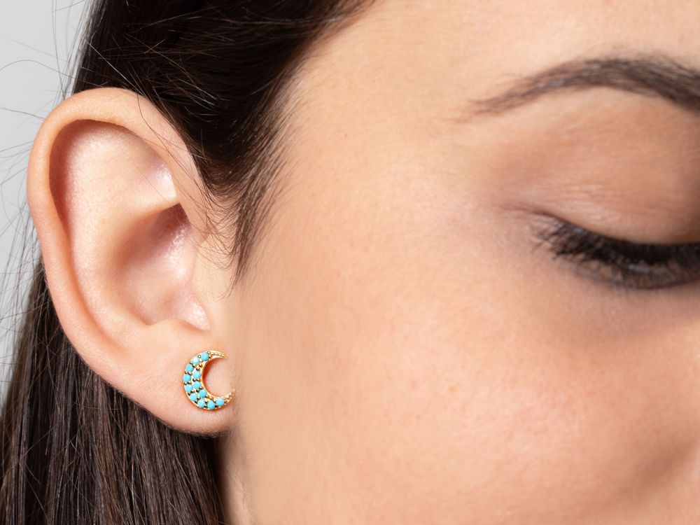 Pendientes Circonita - Luna-Plata Chapado Oro
