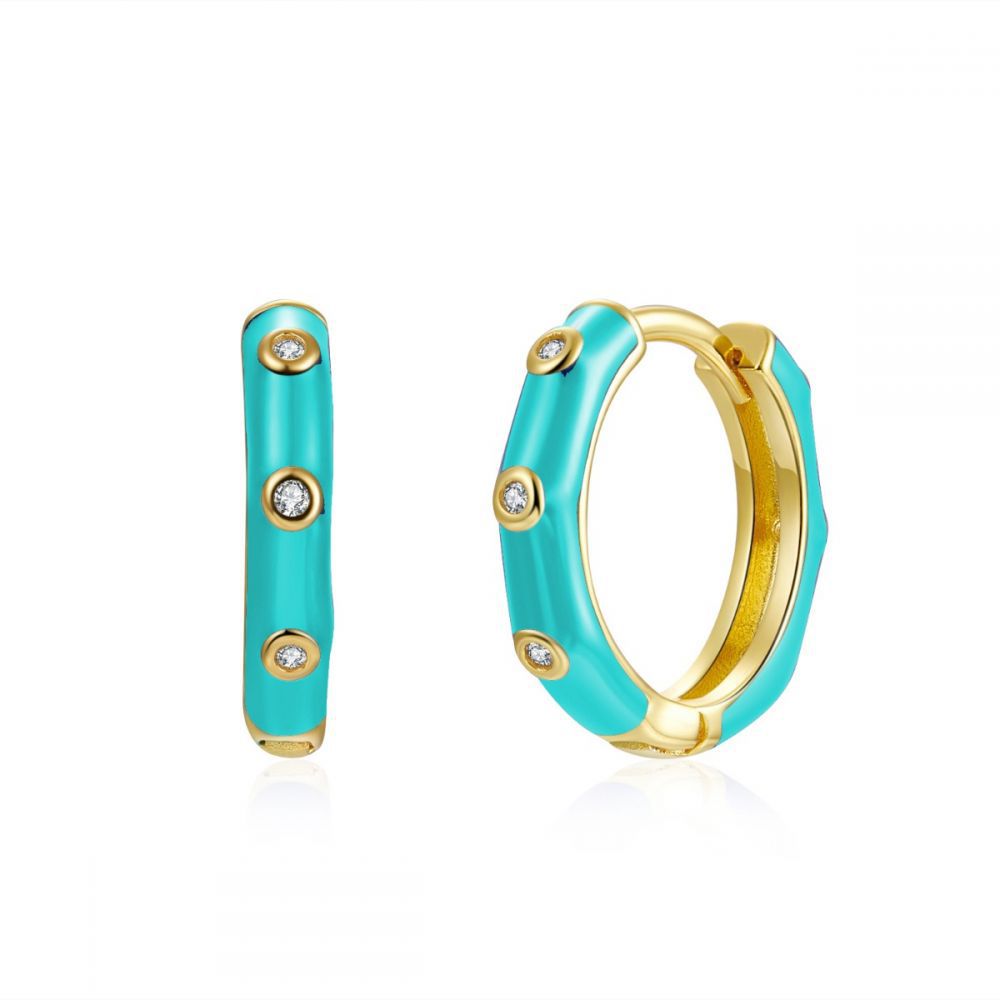 Pendientes Circonita - Aro esmalte Turquesa