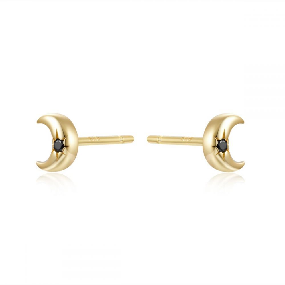 Pendientes Circonita Negra - Luna 6mm - Bañado Oro