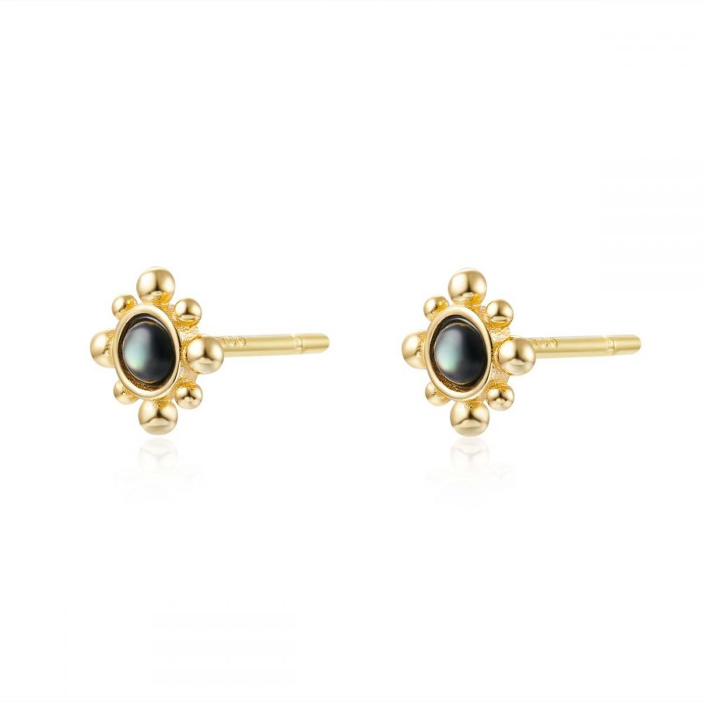 Pendientes - Nacar Negro - 6 mm - Bañado Oro
