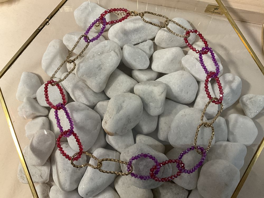 Collar con eslabones de acero y piedrecitas rosas