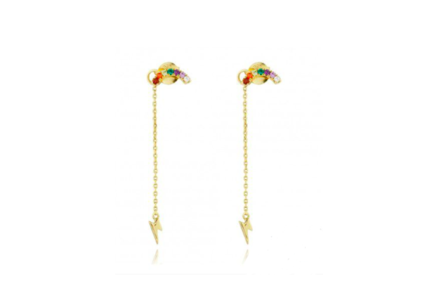 Pendiente arcoiris-rayo dorado