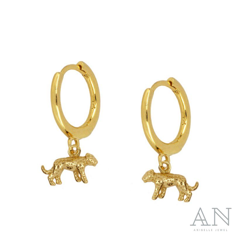 Pendiente aro con jaguar disponible en plata 925 bañada en oro.