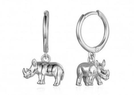 Pendiente aro con rinoceronte disponible en plata de primera ley y plata 925 .