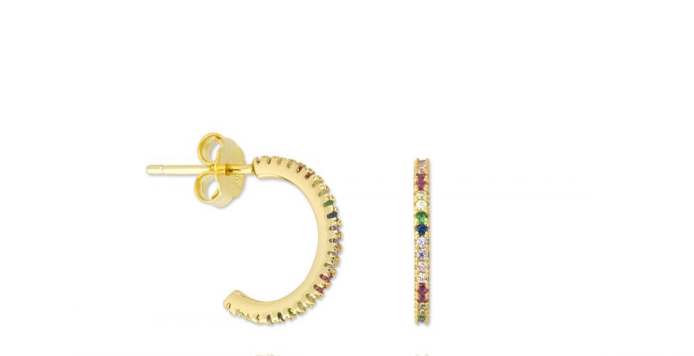 Pendiente aro plata de ley con baño de oro y circonitas de colores .