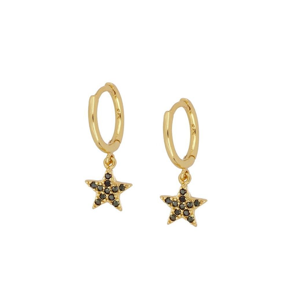 Pendiente aro con estrella en plata 925 bañada en oro.