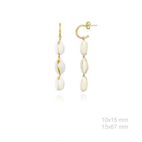Pendiente con aro y conchas disponible en plata de ley con baño de oro.