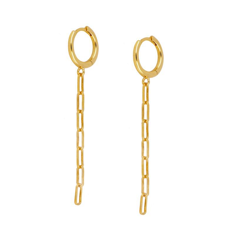 Pendiente aro con cadena disponible en plata de primera ley y plata 925 bañada en oro.