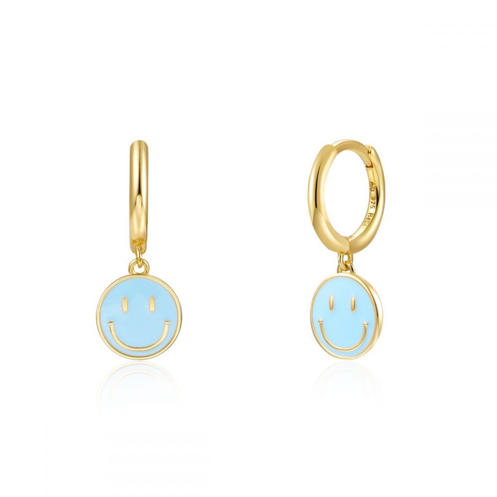 Pendiente Smiley - Enamel Turquesa - 11mm - Bañado Oro