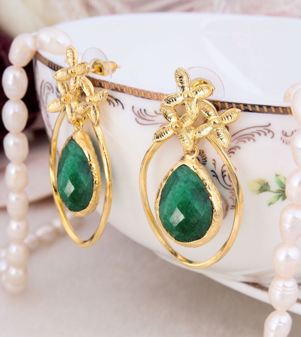 PENDIENTES DE BRONCE CON BAÑO DE ORO DE 14K. CON PIEDRAS PRECISOSAS