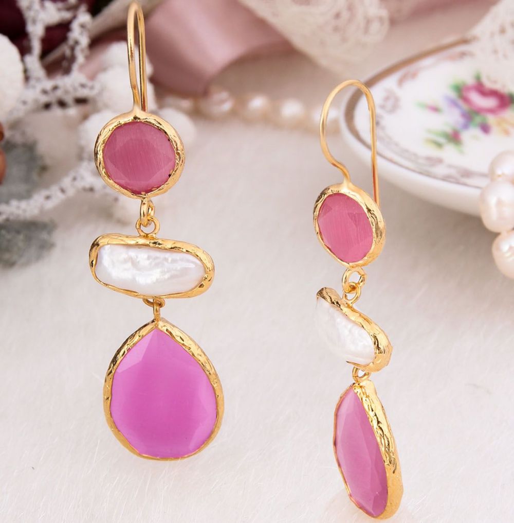 PENDIENTES DE BRONCE CON BAÑO DE ORO DE 14K. CON PIEDRAS PRECISOSAS