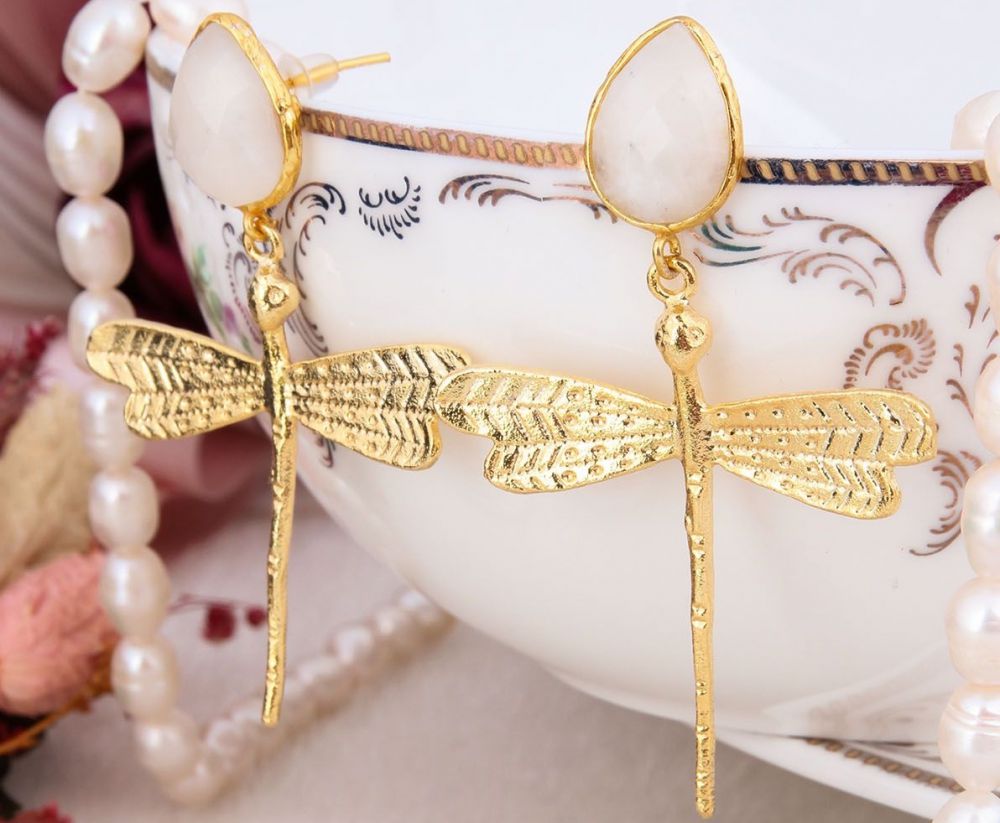 PENDIENTES DE BRONCE CON BAÑO DE ORO DE 14K. CON PIEDRAS PRECISOSAS