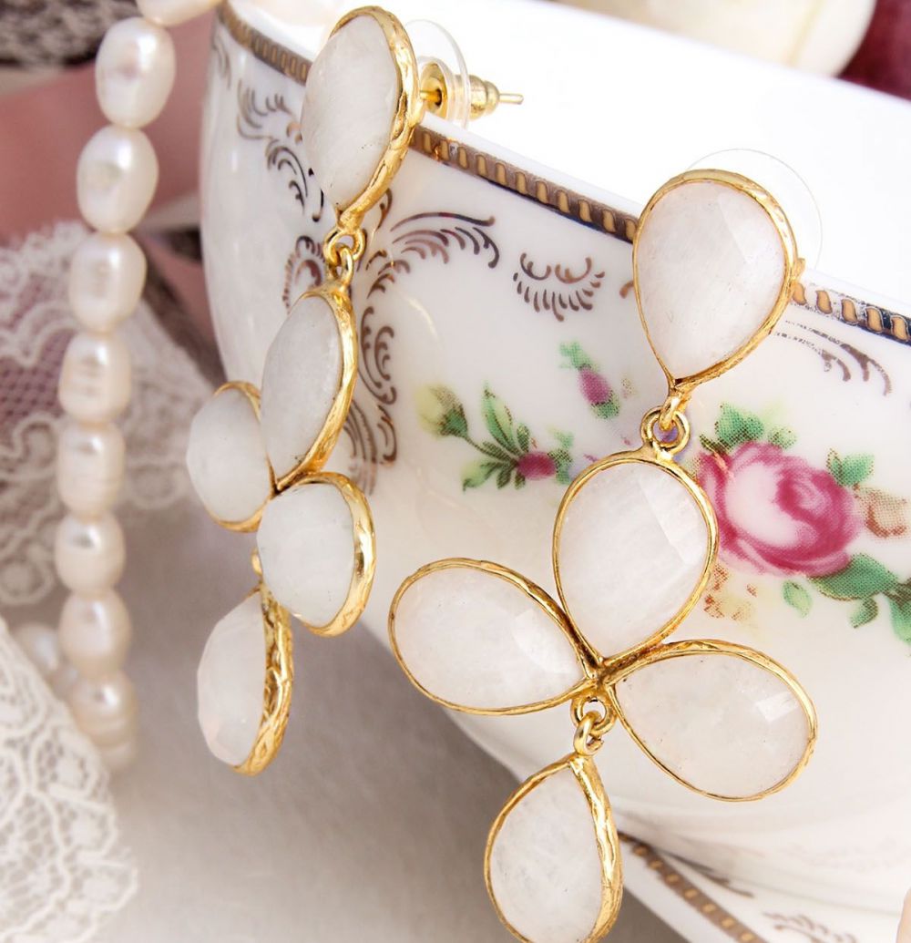 PENDIENTES DE BRONCE CON BAÑO DE ORO DE 14K. CON PIEDRAS PRECISOSAS
