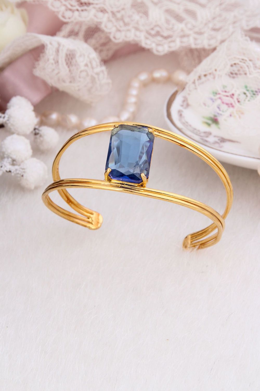 BRAZALETE DE BRONCE CON BAÑO DE ORO DE 14K. CON PIEDRAS PRECISOSAS