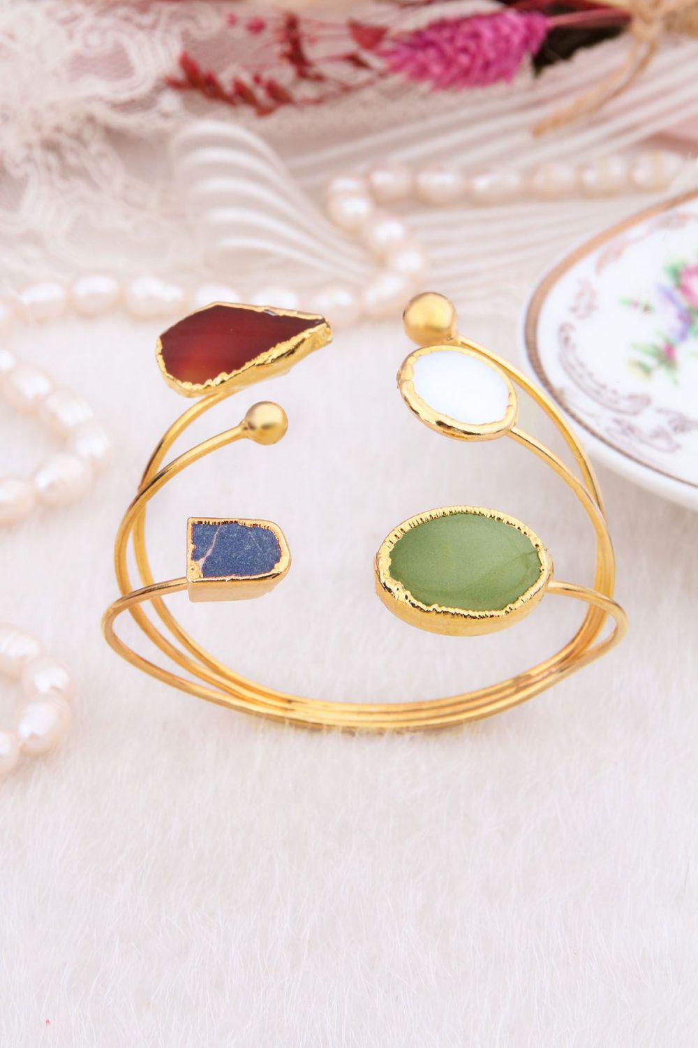 BRAZALETE DE BRONCE CON BAÑO DE ORO DE 14K. CON PIEDRAS PRECISOSAS